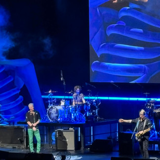 Inflatable skeleton busts flanked either side of the stage, ominously hovering over the band and providing a glowing backdrop, complete with smoke emanating from their mouths.